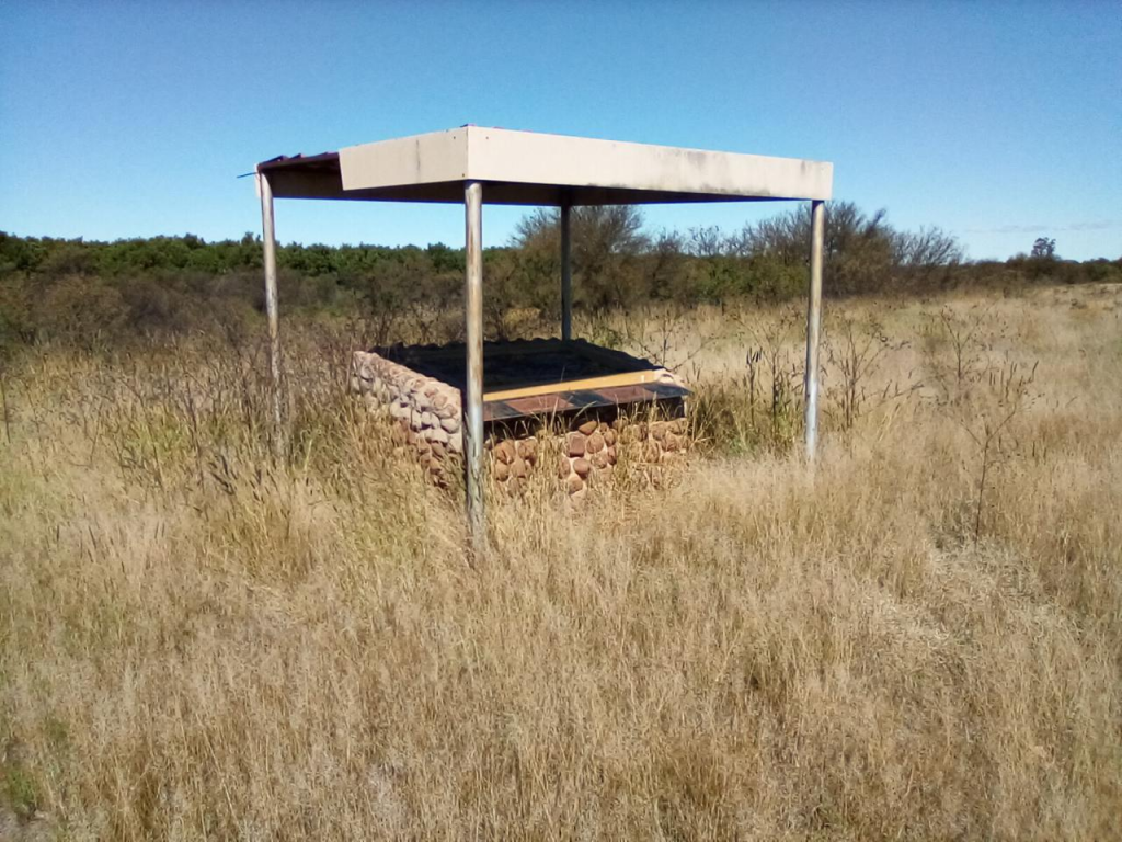 Just a few meters from the memorial by the edge of the ridge on the Modder River there is a tin roof covering a three-dimensional map and information point. Unfortunately, the map is faded and eroded. The farmer had told me that someone had vandalized and removed the information pieces that were attached to the map.