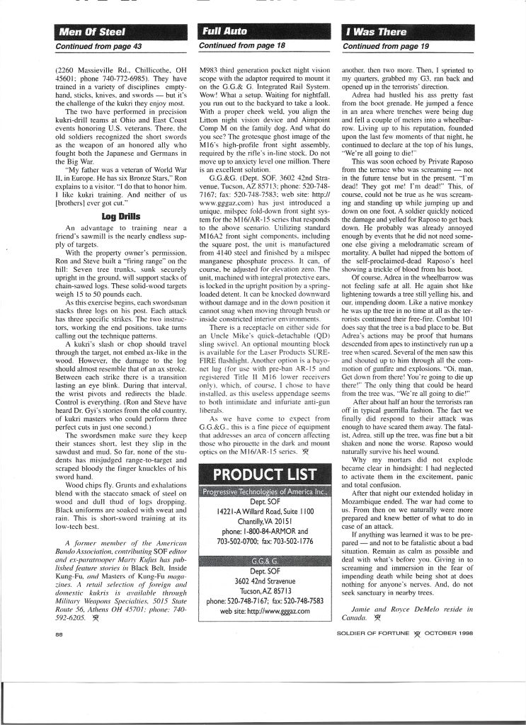 Published in Soldier of Fortune Magazine, October edition, 1998.